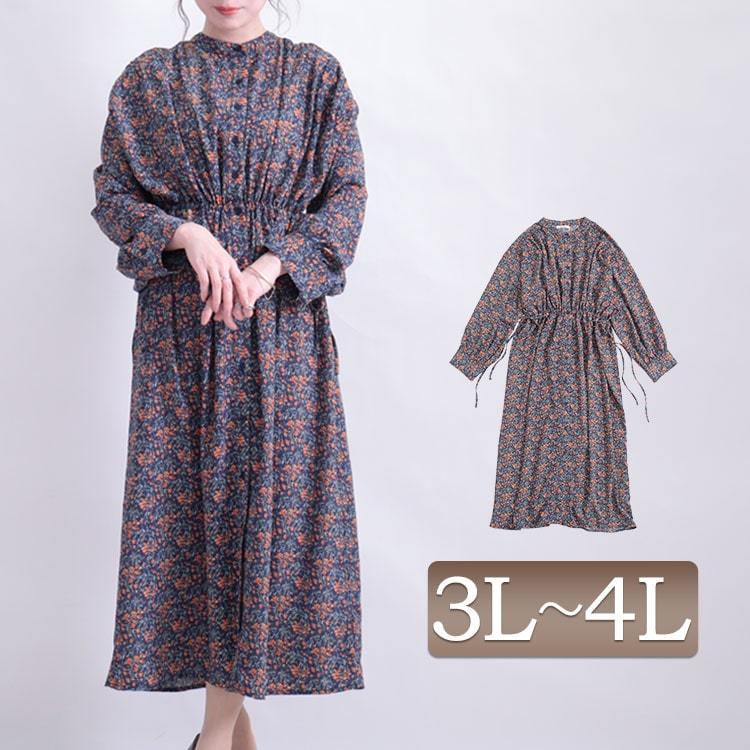 大きいサイズ レディース ワンピース 小花柄ギャザーシャツワンピース ワンピ ロングワンピース 夏新作 3l 4l ネイビー ゴールドジャパン and q1414 大きいサイズワンピース問屋 通販 yahoo ショッピング