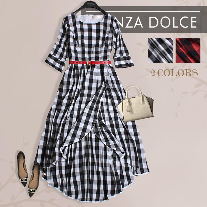 ロングワンピース ワンピ 韓国 コーデ きれいめ 40代 30代 ガーリー フレア ギンガムチェック パフスリーブ モノトーン ボックスプリーツ 20代 デート お出かけ おしゃれ 大人 可愛い dress no sato powered by base