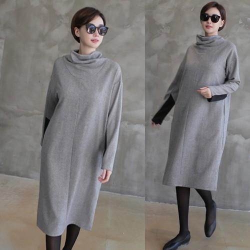 ミセス ワンピース タートルワンピ ゆったりサイズ ロングワンピ 秋冬 体型カバー 40代 50代 60代 ロング丈 ワンピ 長袖 グレー k0609 shopmall to you powered by base