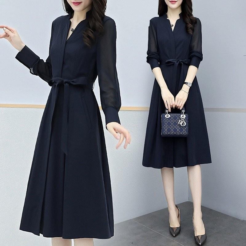 ワンピース レディース 春夏 きれいめ 膝丈 上品 長袖 シフォン ワンピース vネック 着痩せ 通勤 結婚式ドレス お出かけ オシャレ 30代40代50代 inter30 intertech1ヤフーショッピング店 通販 yahoo ショッピング