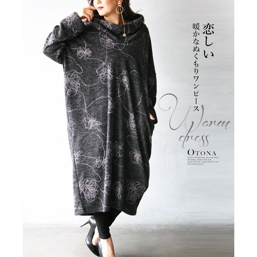 otona 40代 50代 60代 ワンピース あったか 花柄 ブラック 恋しい 暖かなぬくもりワンピース t18784ko otona 通販 yahoo ショッピング