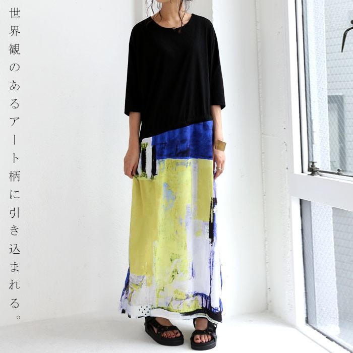 ワンピース ロング 羽 フェザー フェザー柄ドッキングワンピース 100ptメール便可 pa 02225 antiqua 通販 yahoo ショッピング