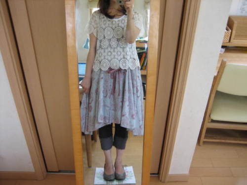 春夏 cucciaクチャ 可愛いお花柄 小紋柄切り替えチュニックコットンワンピース モーヴ ブラウン