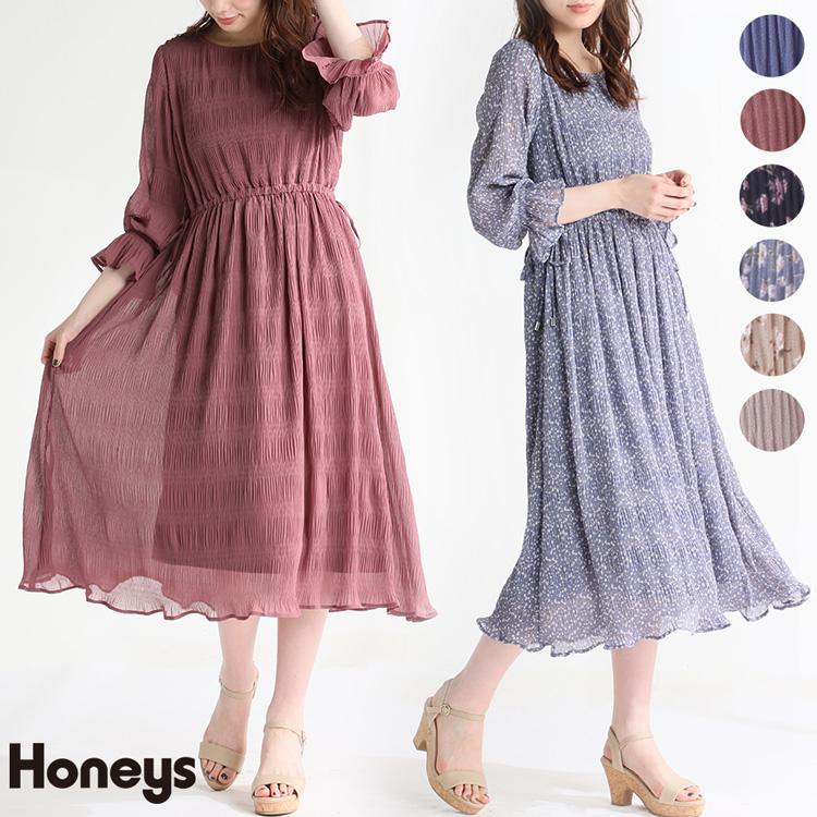 ワンピース 長袖 きれいめ 可愛い 春 夏 秋 冬 honeys ハニーズ プリーツ切替ワンピース ハニーズ オンラインショップ 通販 paypayモール