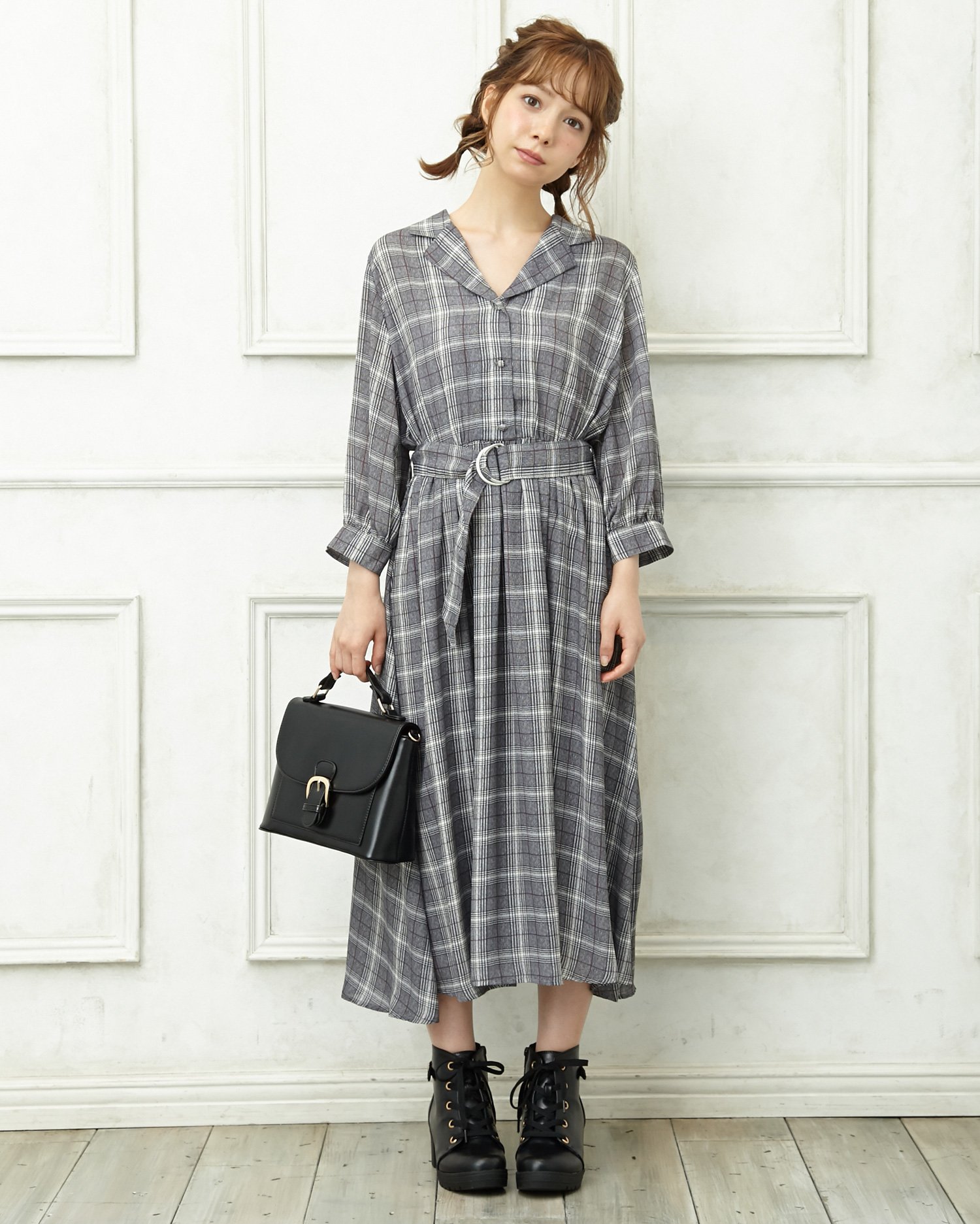 コーディネート 襟付グレンチェックaライン ワンピース ingni イング 公式通販 ingni store イングストア
