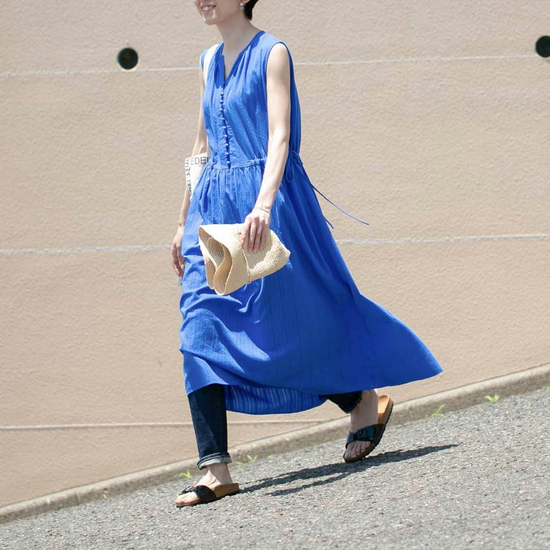 19ssリニューアル予定 旅の気分に着がえよう くしゅっと丸めてok ロングワンピース ブルー kurashi trips publishing 北欧 暮らしの道具店