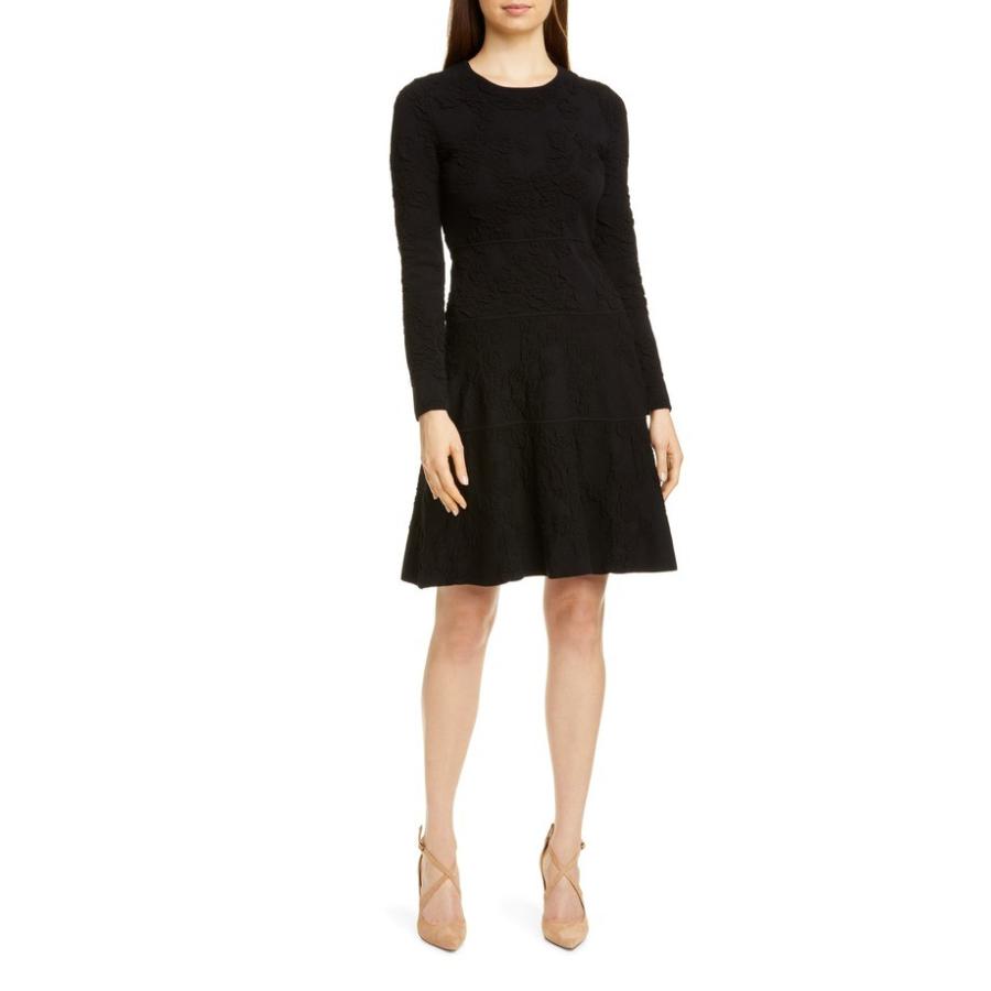 新素材新作 tiered sleeve long jacquard tonal rose lela トップス ワンピース レディース リラローズ wool black dress blend ワンピース www rtd dj
