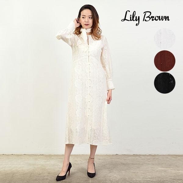 リリーブラウン lily brown 19秋冬 スカーフ付レースワンピース レディース ワンピース ミディアム丈 膝下 長袖 スカーフ 2way レース