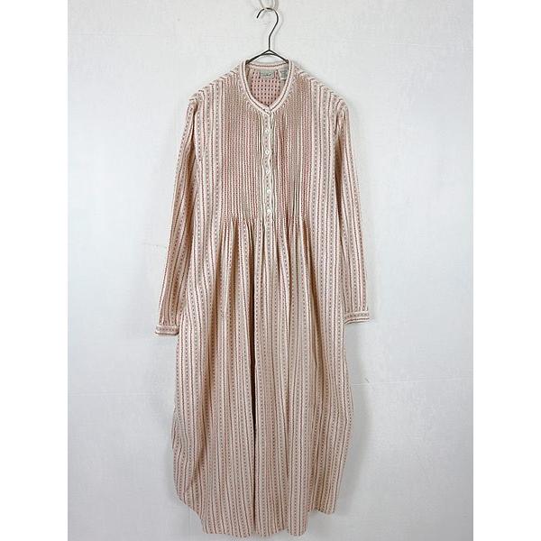 レディース 古着 ll bean チロリアン柄 ピンタック フランネル ワンピース ドレス ロング丈 ピンク m 古着 古着 通販 ヴィンテージ古着屋のドラセナ