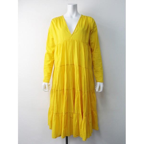 サマーセール merlette マーレット 2018ss 定価5 2万 long sleeve v neck 4 tier ワンピース x small イエロー 黄色 ドレス 2400011613103