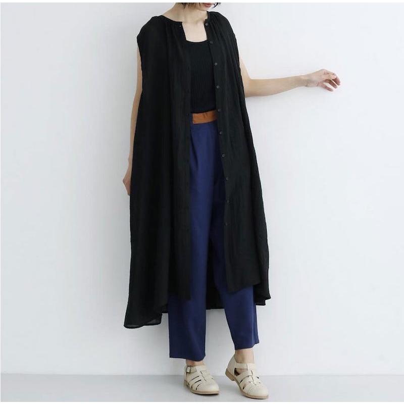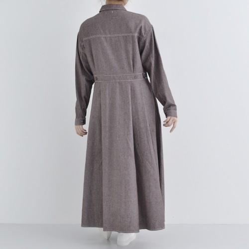 ウエストベルト付き綿麻シャツワンピ1319 0305