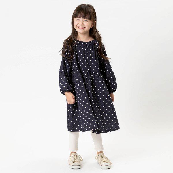 メール便可 セラフ s117051 m12m14 4色2柄布帛ワンピース キッズ ベビー トップス 長袖ワンピース 長そで 花柄 ドット 水玉 女の子 子供服 seraph 4023467