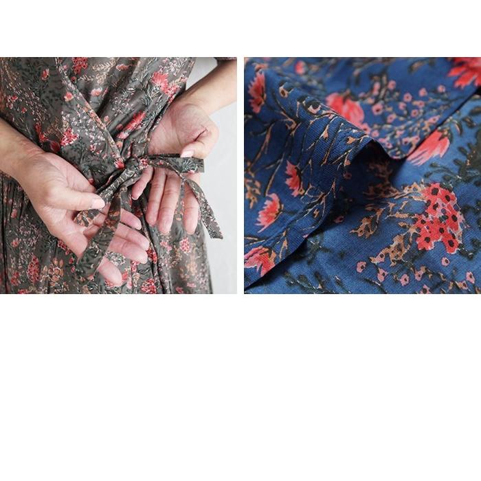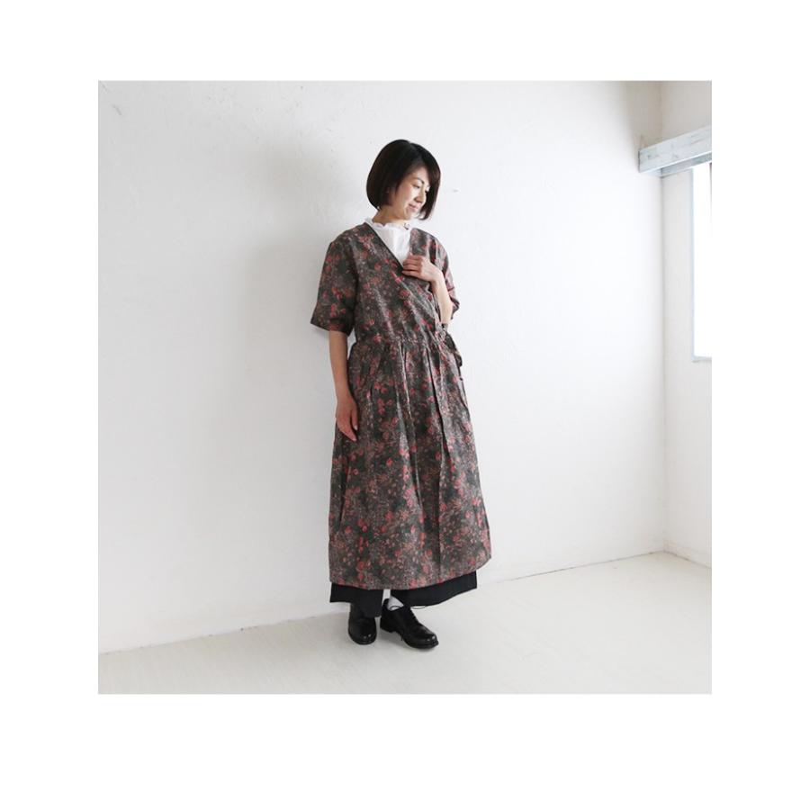 maison de soil メゾンドソイルflower block print gathered cache coeur dress 小花柄ギャザーカシュクールワンピース nmds21304 provice powered by base