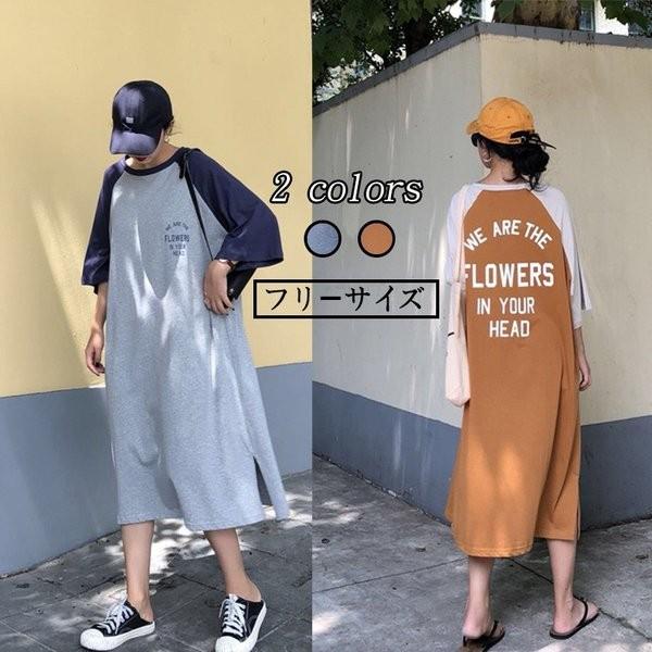 ゆったりワンピースロング 韓国 tシャツワンピース tシャツ ロング ワンピース 大きいサイズ 秋新作 ロゴt ロゴ ロングワンピース 韓国 basecamp8849 powered by base