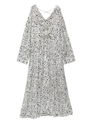 アンスリード un3d 17ss ワンピース ミニ ノースリーブ 総柄 vネック f 白 紺 my os レディース