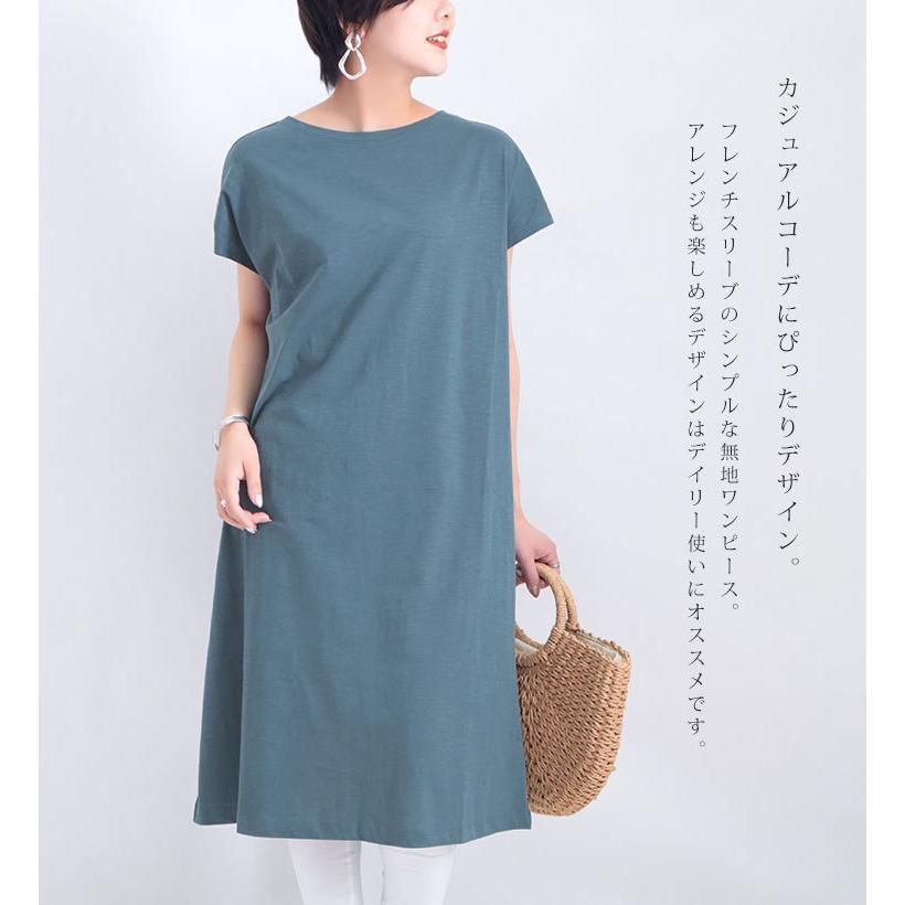 1枚で決まる ドゥクラッセのuvスラブ フレンチ袖ワンピース 自然体ミニマリスト