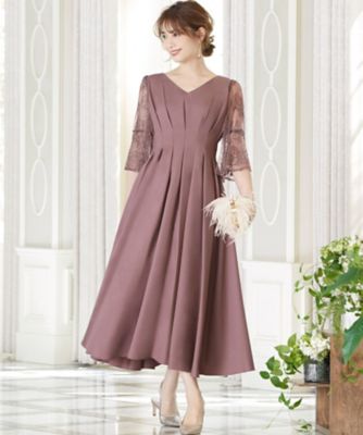 取り寄せ品 パーティドレス ワンピース 総レース ひざ下丈 七分袖 袖あり 30代 ブラック 花柄 xライン シースルー uネック ベルスリーブ フェミニン 春夏 lavenderlane fashion shop powered by base