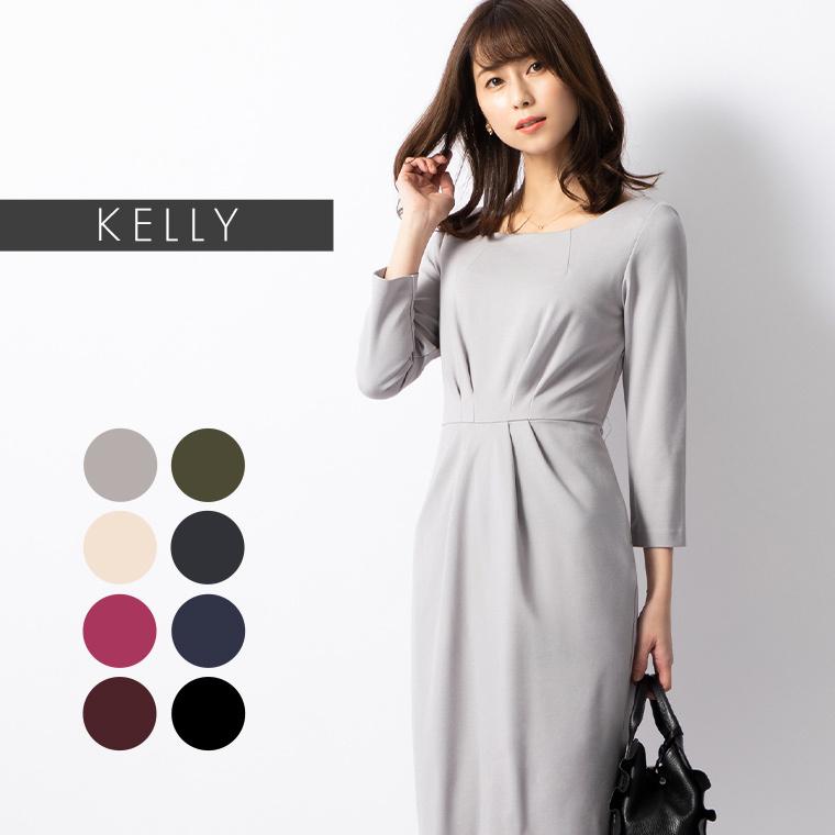 ワンピース ケリーx line スタンドネック メビウスリング opr13 050001 きれいめ 30代 40代 50代 着やせ 大人 上品 エレガント 大きいサイズ トールサイズあり タイトワンピース ジャージー 幾何学 オフィス 二次会 ハイネック ボトルネック 膝丈 七分袖 春