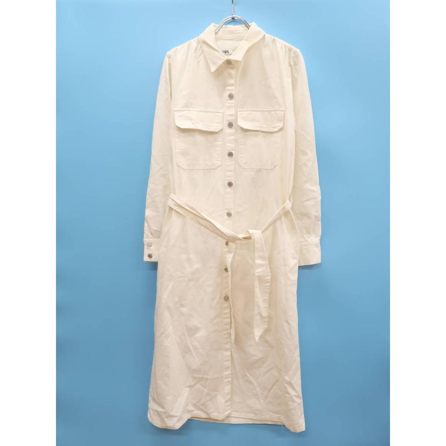 zara ザラ の ベルト付きシャツワンピース 白 タイベルト付き ワンピース wear