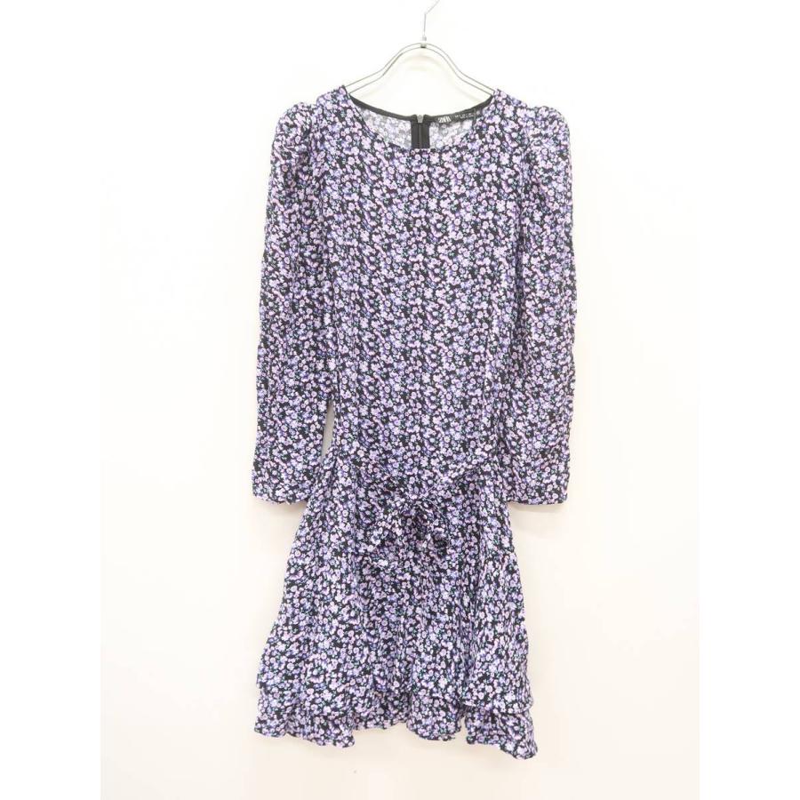 中古 ザラ zara ワンピース 5分袖 ミニ フリルヘム レーヨン 小花柄 ブラック 2sa0319 レディース au pay マーケット